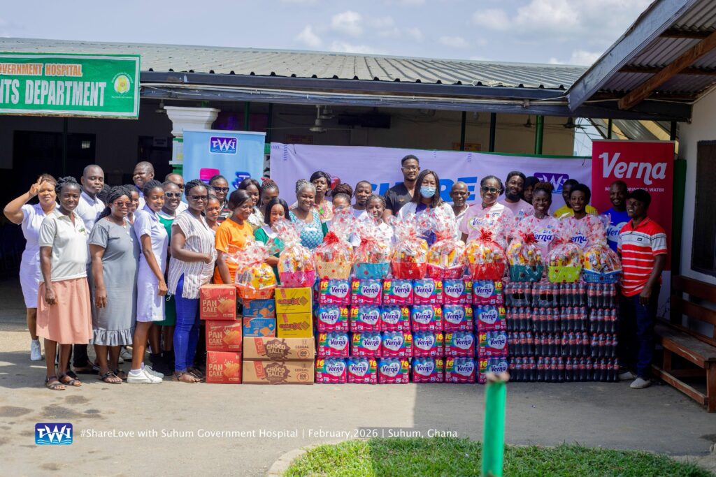 Twellium marked February 14th with a visit and donations to patients and healthcare workers at Suhum Government Hospital.